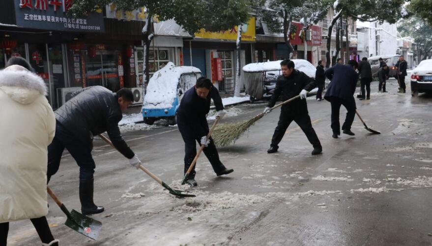 镇机关、镇直各单位、村(社区)等干部群众组成的志愿者队伍也迅速出动,大家拿起铁锹、扫把等工具,全力清扫主要交通道路积雪,并在危险路段摆放警示标志,提醒广大群众注意出行安全。